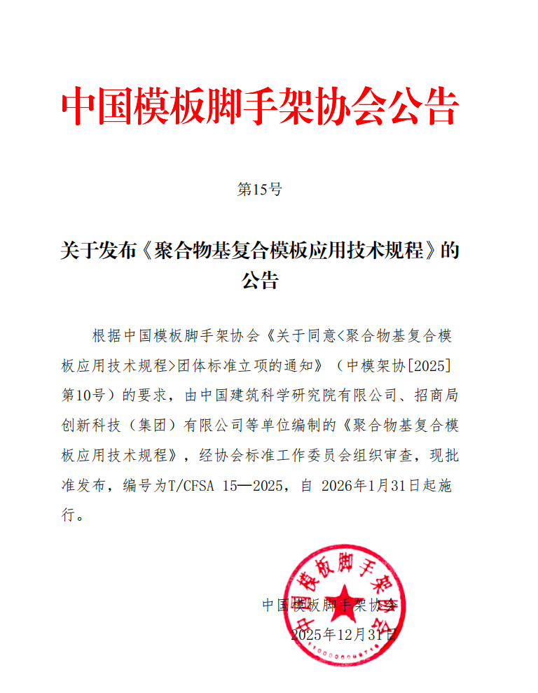 关于发布《聚合物基复合模板应用技术规程》的 公告